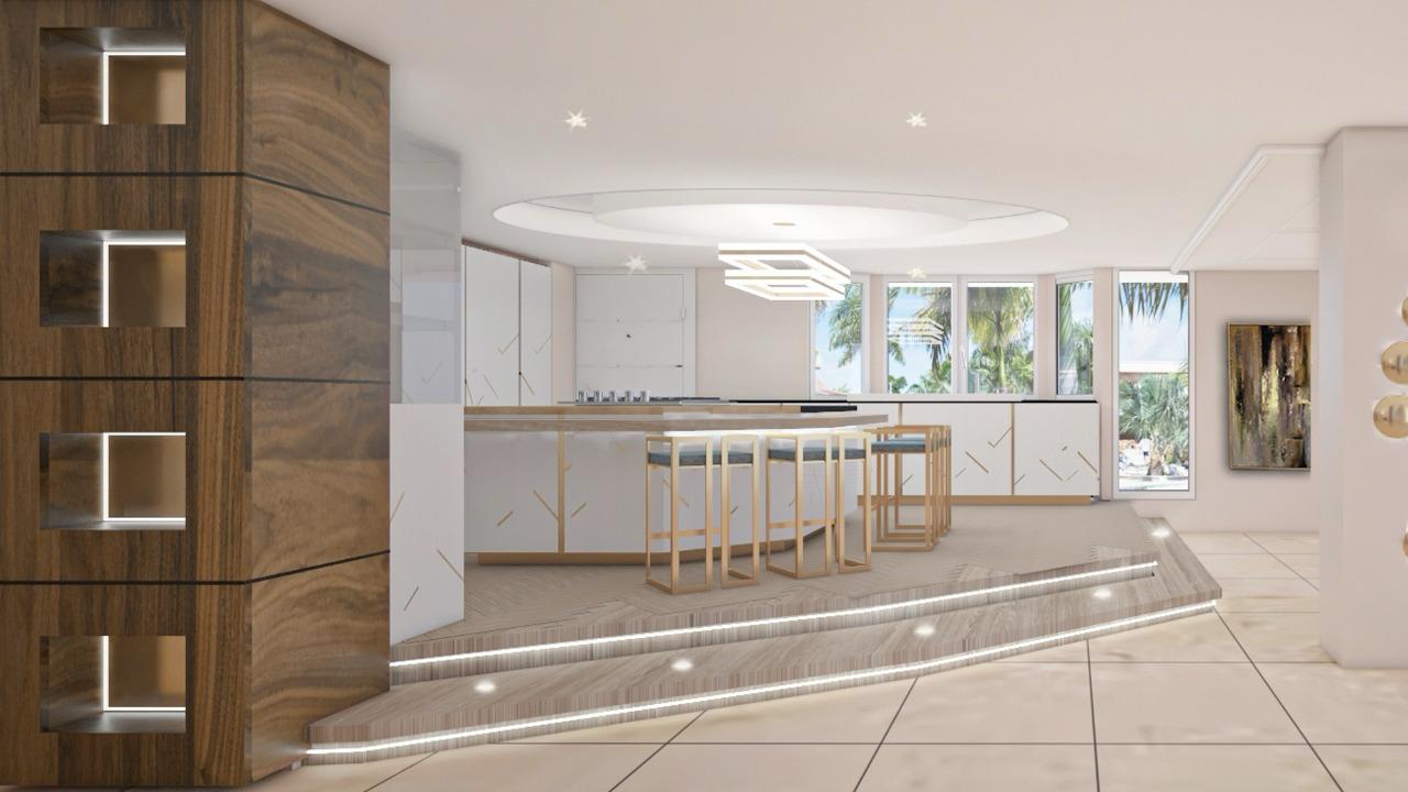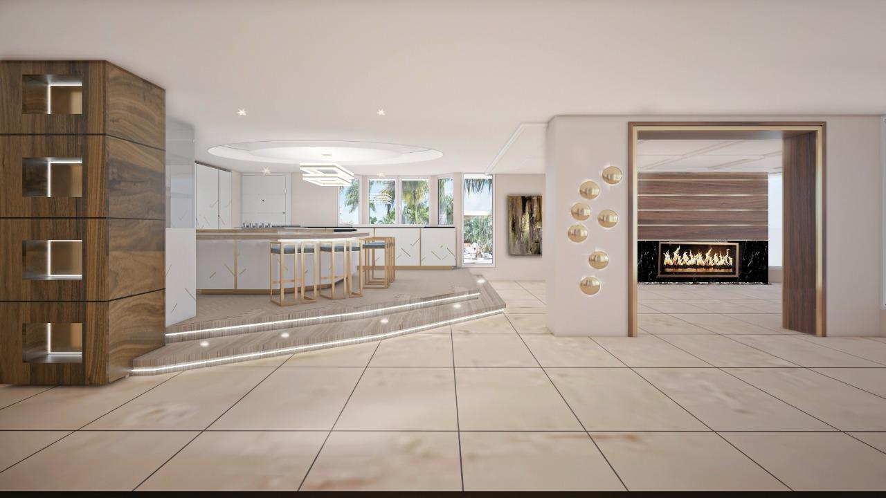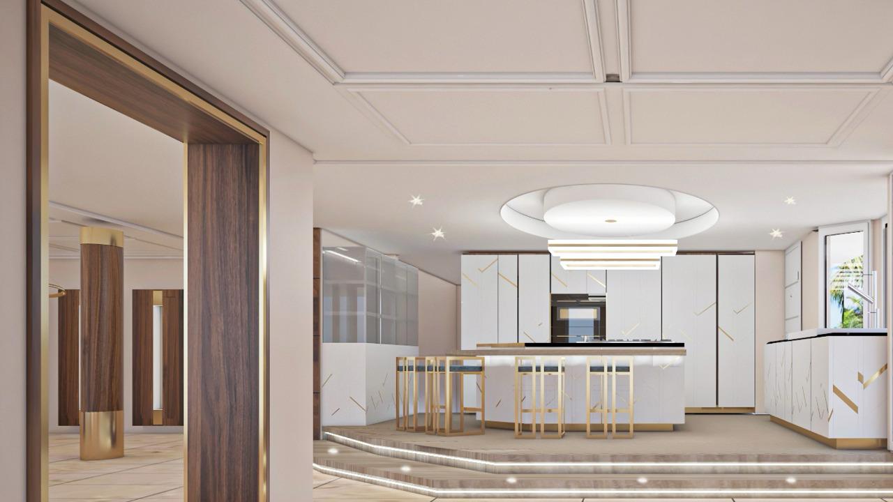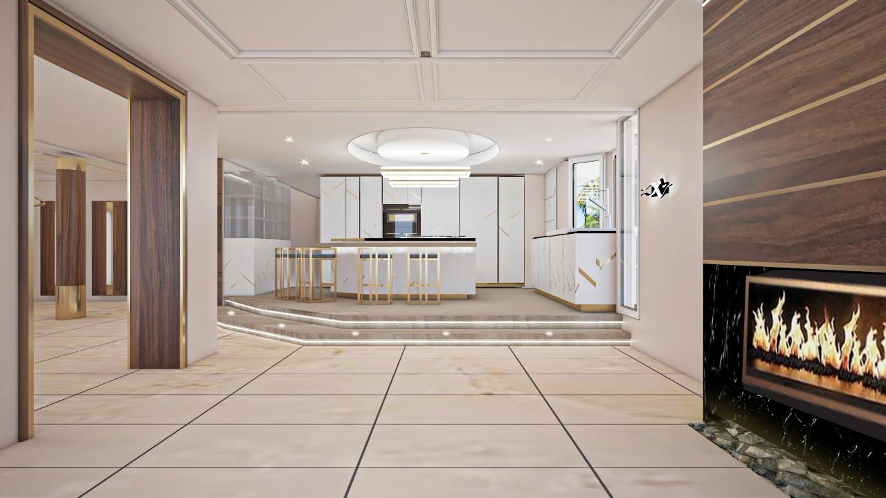This bathroom masterfully combines minimalism with bold patterns through its standout chevron feature wall and clean architectural elements.