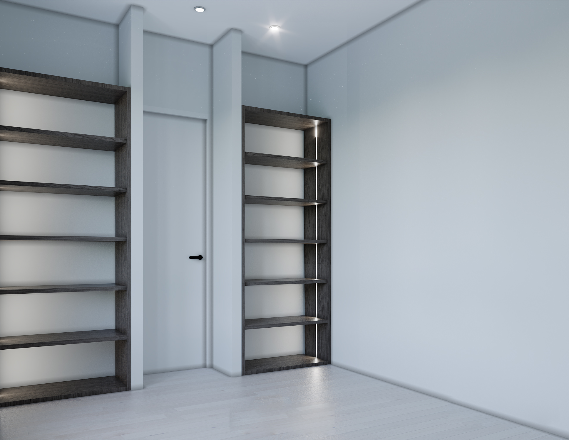 This clean and symmetrical shelving setup combines functionality with refined aesthetics, perfect for home offices or reading nooks.