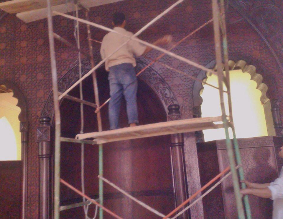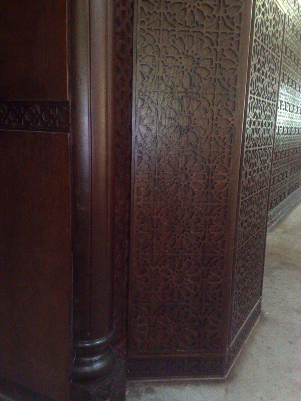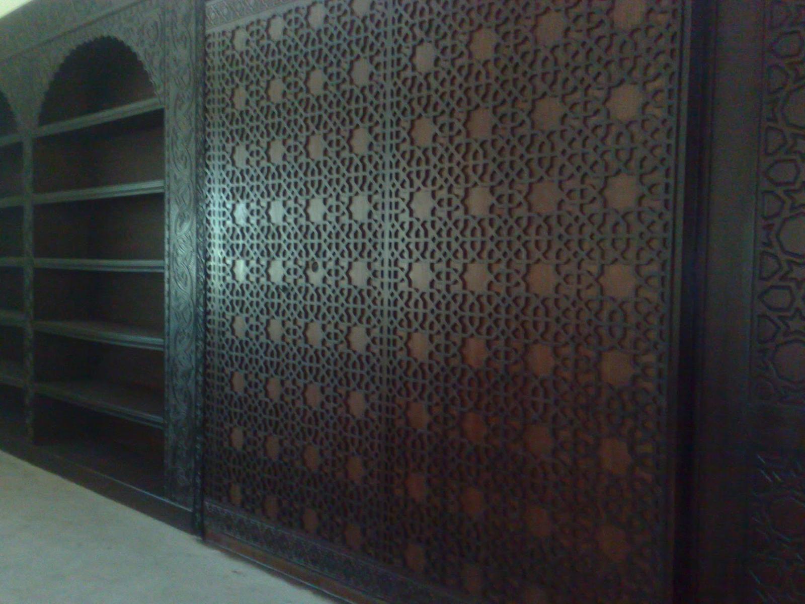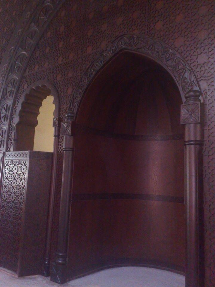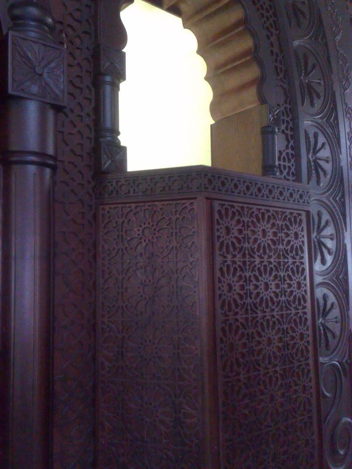 - The panels and doors are meticulously carved with Islamic geometric motifs, showcasing traditional craftsmanship.