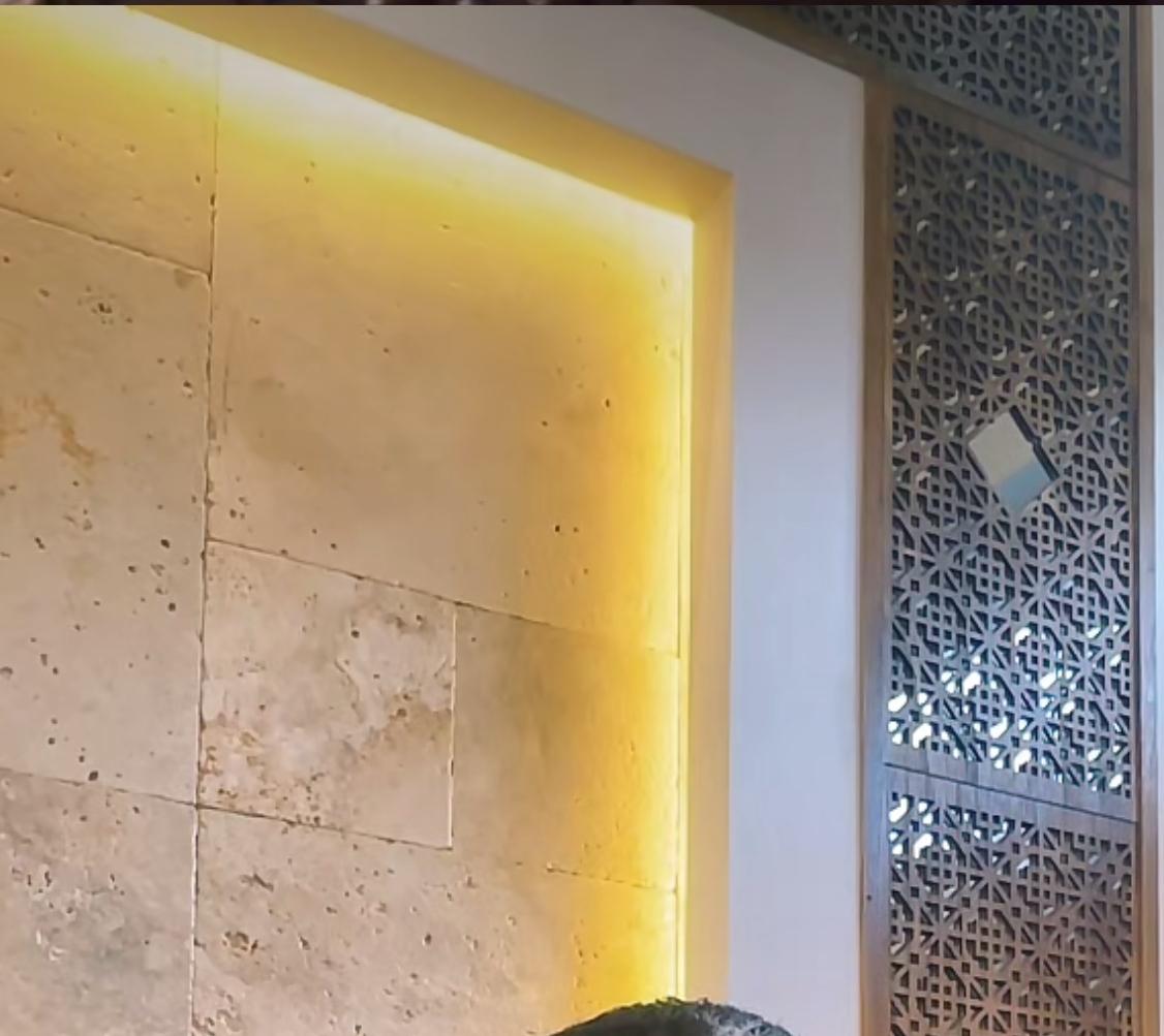 These images showcase a beautifully crafted wooden interior, adorned with traditional geometric patterns. The woodwork is detailed and elegant, reflecting a sophisticated design that integrates cultural heritage with architectural artistry.