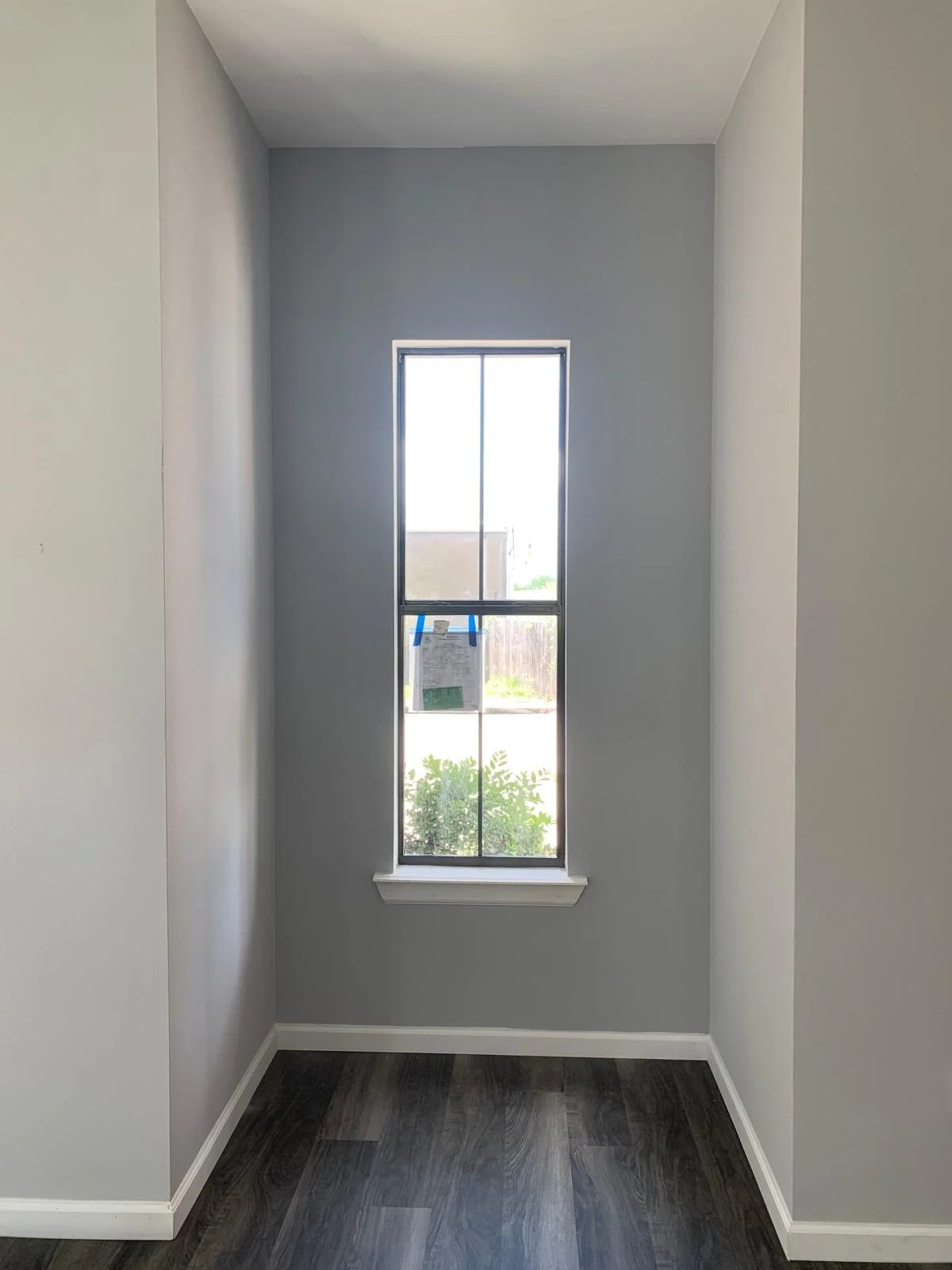 - Smooth and clean gray-toned walls bring a modern, neutral palette to the space.