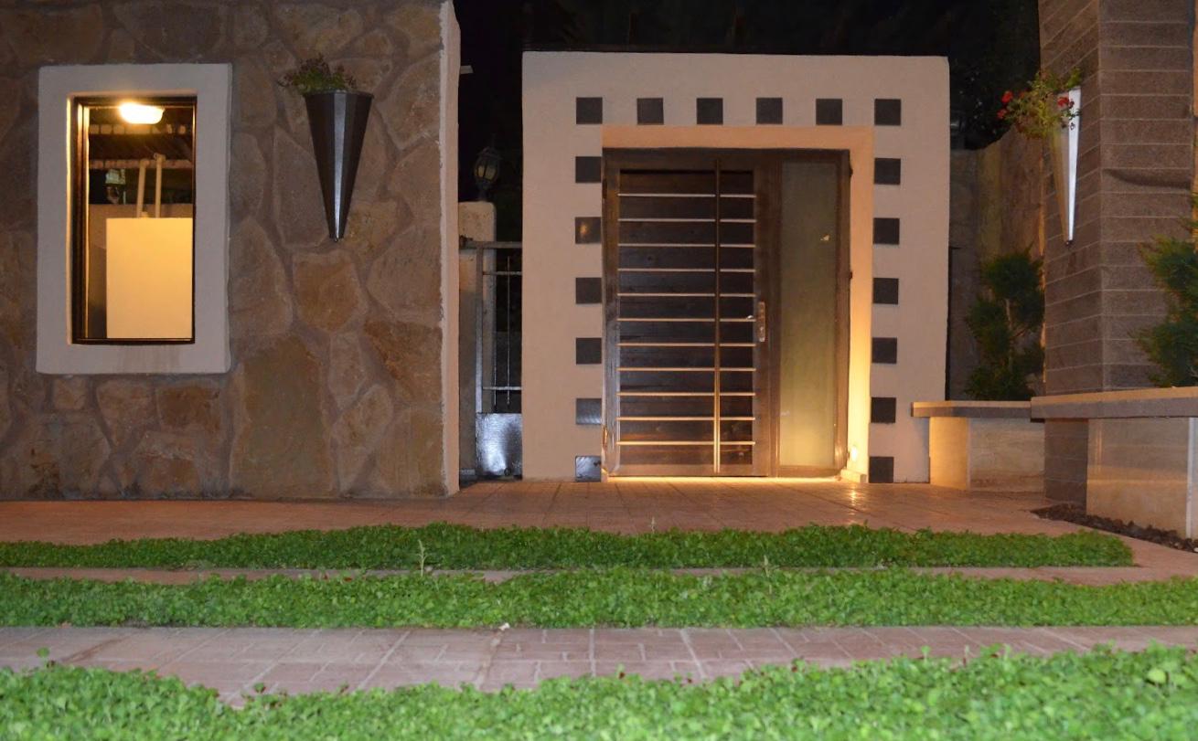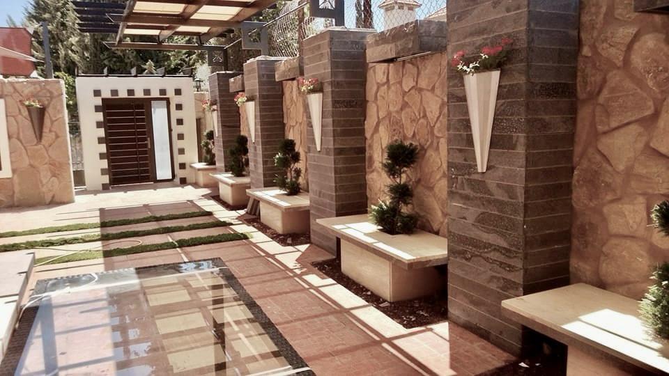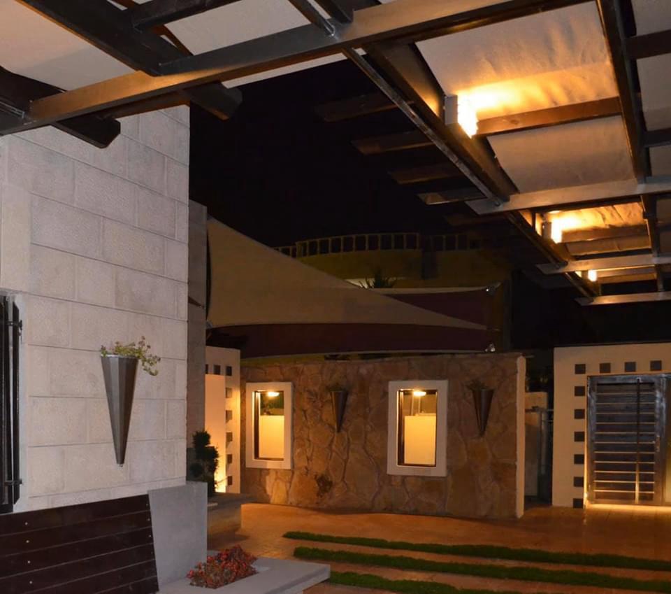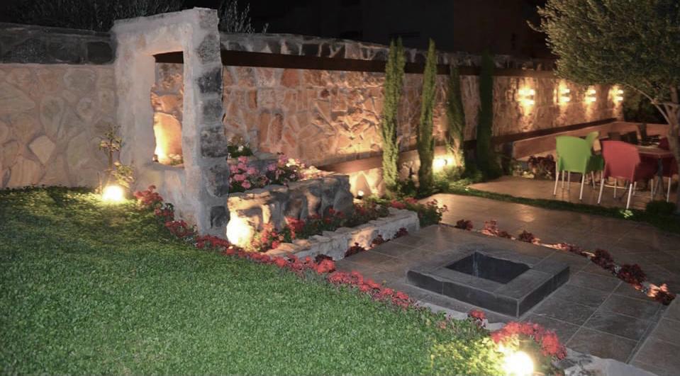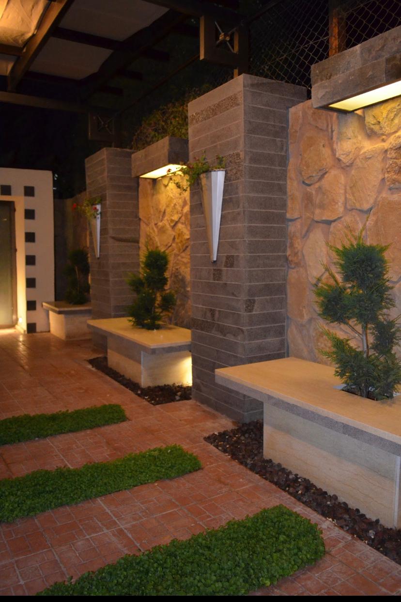 This beautifully designed outdoor space blends modern architecture with natural stone aesthetics, creating a serene and stylish garden environment. The combination of structured walkways, vertical garden features, and artistic lighting makes this an ideal setting for relaxation, entertaining, and appreciating nature—both day and night.